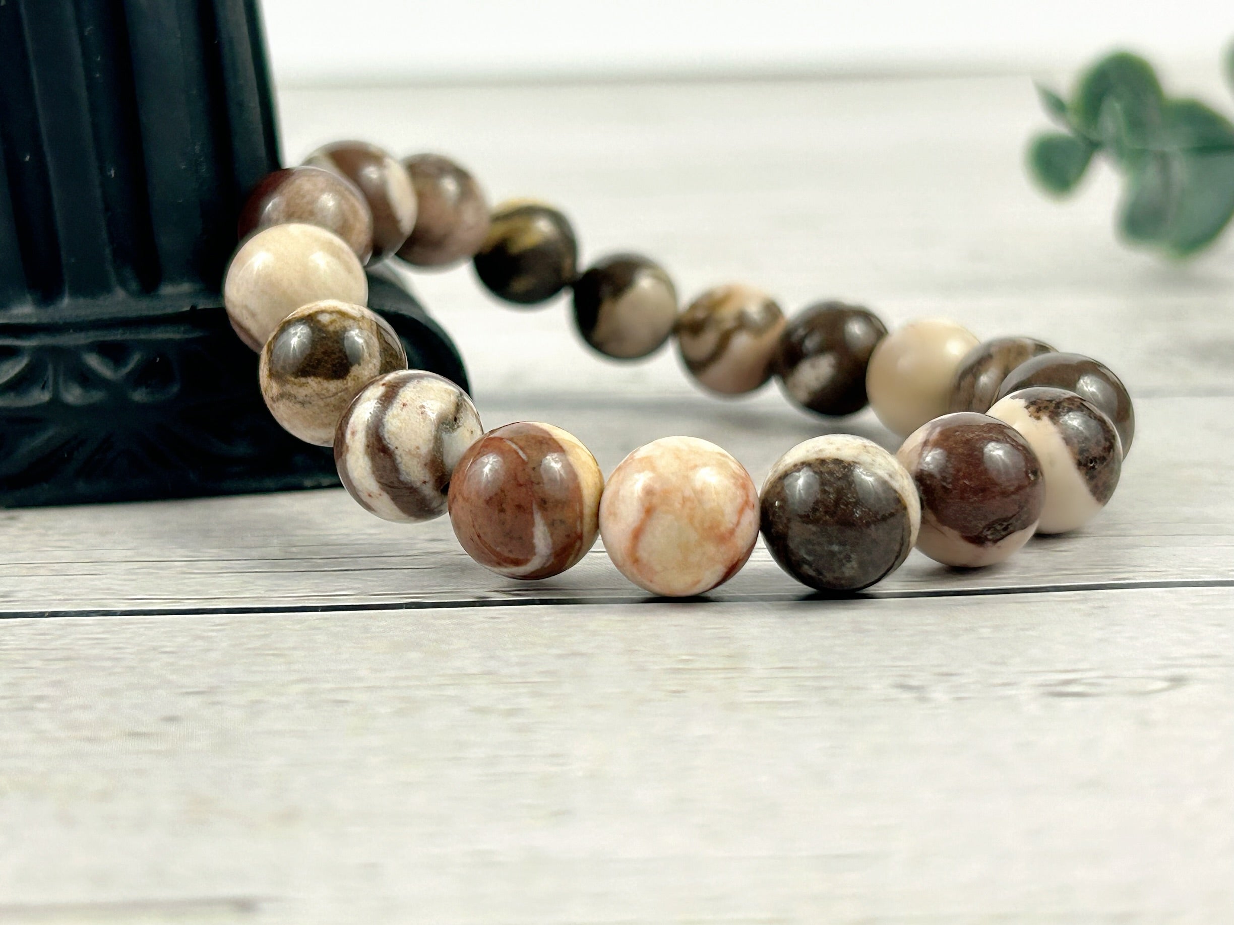 Zebra jasper is a healing stone that relieves stress, anxiety, depression, and emotional trauma. The benefits that this amazing stones includes:
